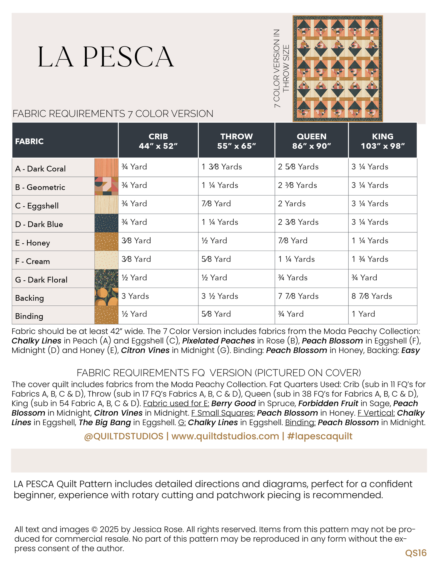 ✔ Fabric Friendly: Works beautifully with solids, textures, or bold prints, this pattern uses fabric from Moda Fabrics Peachy Collection.